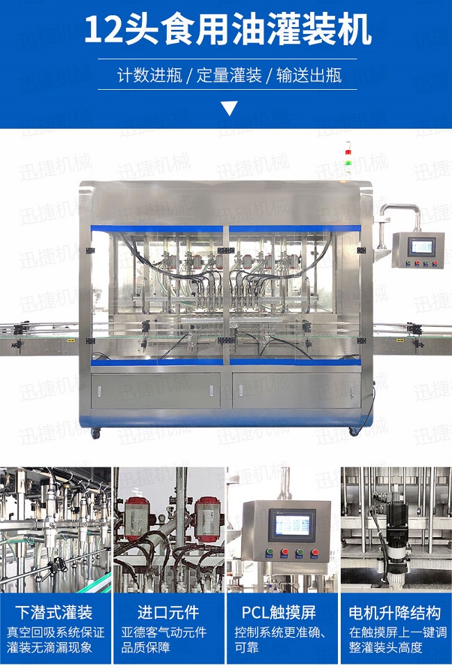 該系列灌裝機(jī)采用容積式計(jì)量灌裝原理,適用于各種規(guī)(100ml-1000ml)的南瓜籽油、榛子油、牡丹籽油、芝麻油、核桃油、山茶油、亞麻籽油、棉籽油、橄欖油、大豆油、玉米油、菜籽油等食用油灌裝。設(shè)備采用伺服驅(qū)動活塞計(jì)量,保證了 1‰的灌裝精度,在保證灌裝精度的同時,提高了 20%-35%灌裝速度,操作簡單,維護(hù)方便,節(jié)省人工成本,生產(chǎn)效率更高。