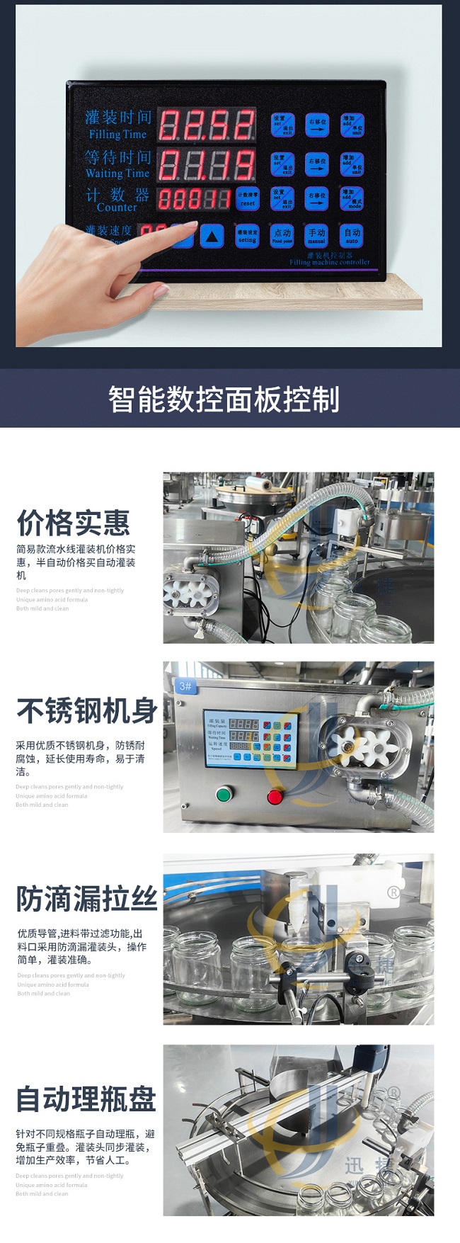 這款轉(zhuǎn)盤(pán)式蜂蜜膏液灌裝機(jī)采用智能控制操作,液體灌裝速度/時(shí)間可調(diào)整,廣泛應(yīng)用于食品、飲料、化妝品、藥物、化工等行業(yè)中。