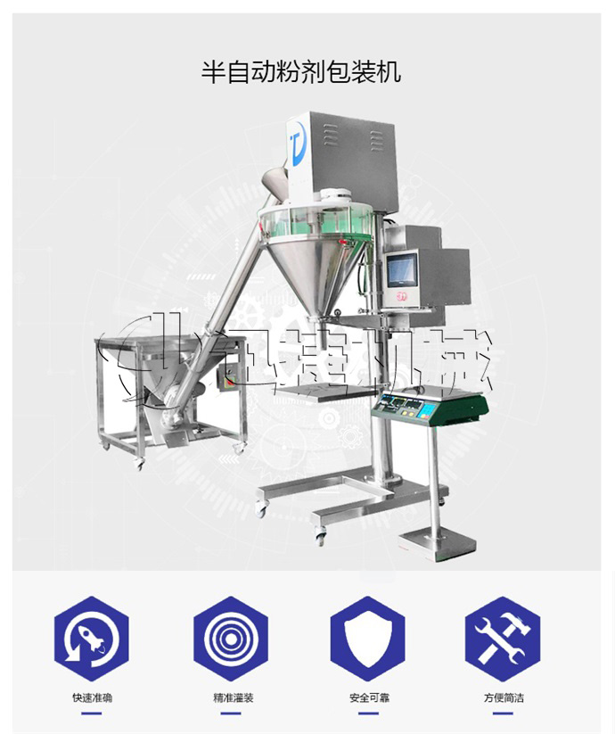 該粉劑包裝機(jī)適用于有一定流動(dòng)性的粉劑狀、顆粒狀物料,可適合袋類、罐類、瓶類等各種包裝容器粉劑定量包裝,速度快、精度高。如農(nóng)藥、獸藥、預(yù)混料、添加劑、奶粉、淀粉、調(diào)味品、酶制劑、飼料等粉劑狀、雞精、餃子粉、葡萄糖、奶粉、綠豆粉、淀粉、調(diào)味料、飼料、顆粒狀物料的定量包裝。該款半自動(dòng)粉劑包裝機(jī)在市場(chǎng)深受顧客喜愛(ài),自然有它的優(yōu)勢(shì),該設(shè)備提高工作效率、降低生產(chǎn)成本計(jì)量準(zhǔn)確、包裝規(guī)格大小均可成品干凈整潔、粉塵不外粘機(jī)器性能穩(wěn)定、使用壽命長(zhǎng)占用空間小、操作簡(jiǎn)便、移動(dòng)方便。