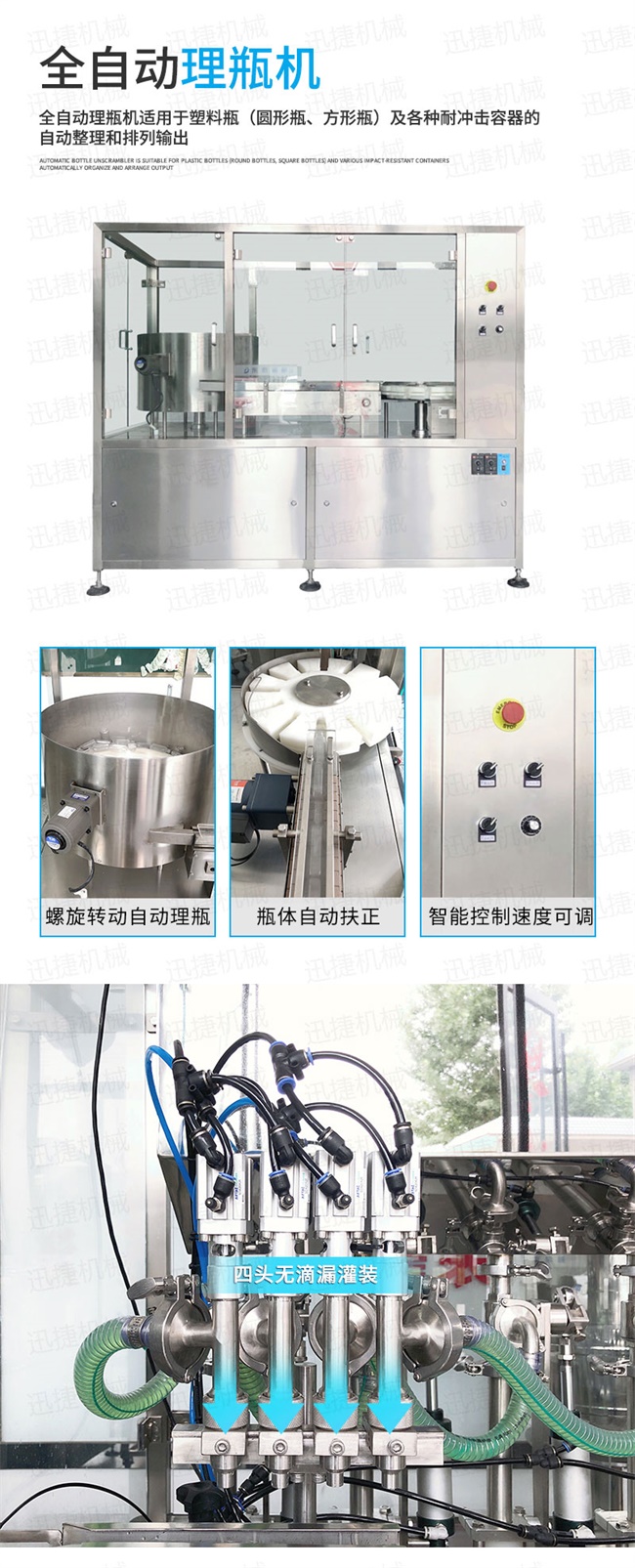 全自動(dòng)凝膠生產(chǎn)線適用于消毒凝膠、免洗手洗手液、免洗手消毒凝膠、消毒液、84消毒液、醫(yī)用酒精、75%酒精消毒液、75度酒精、消毒水、殺菌消毒劑、醫(yī)用酒精、碘酒、次氯酸鈉、劑、醫(yī)用乙醇消毒液、瓶裝消毒劑等產(chǎn)品,有多頭全自動(dòng)消毒液灌裝機(jī)和封箱機(jī)、貼標(biāo)機(jī)、打包機(jī)、噴碼機(jī)等配套設(shè)備組成,實(shí)現(xiàn)消毒液自動(dòng)灌裝,自動(dòng)旋蓋,自動(dòng)貼標(biāo),從灌裝、到成品的全部過程